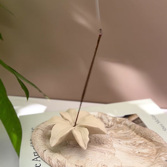 Embrace tranquility with our handcrafted Jesmonite Lily Incense Holder. Inspired by the gentle elegance of a blooming lily, it adds a serene and graceful touch to your meditation and relaxation rituals. A beautiful fusion of mindful living and refined design.